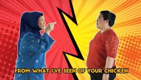 Aunties Makcik Halijah and Bee Li rap for Sambal Chicken supremacy.