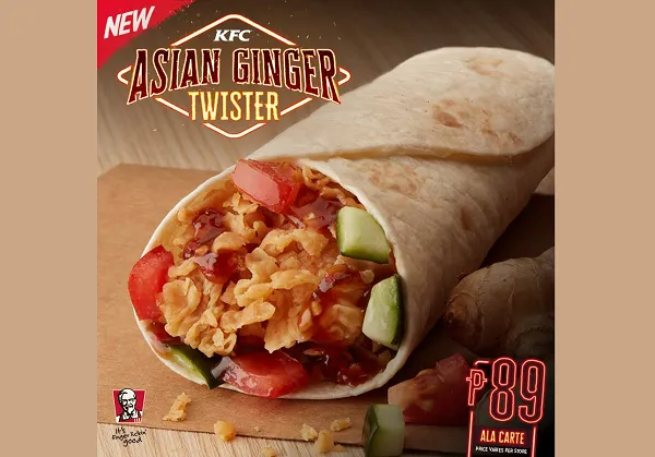 KFC Philippines promotes its new Asian Ginger Twister: a tortilla with Hot Shots drizzled with chili ginger sauce, plus refreshing cucumbers and tomatoes.